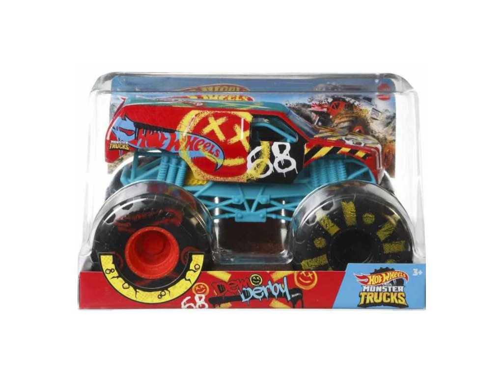 Tyto nadrozměrné Monster Trucky, navržené v měřítku 1:24 s odolnými kovovými karoseriemi odlitky, jsou připraveny na drsnou akci. Obří pneumatiky a velkolepé detaily umocňují pády, nárazy a kaskadérské kousky. Statistiky postav jsou zobrazeny na zadní straně balení spolu s podrobnostmi o síle Monster Trucku, jeho útočné schopnosti, pohonném ústrojí a dalších informacích. Podpořte představivost a vyprávění příběhů s exkluzivními Monster Trucky s velkými koly a skvělým stylem – všechny fanoušky si zamilují. Každý kus se prodává samostatně. Je to skvělý dárek pro fanoušky Monster Trucků a děti od 3 let.