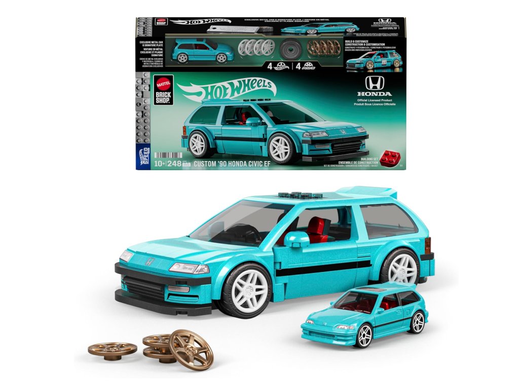 Postavte si ikonu 90. let: Plně sestavitelný upravený vůz Honda Civic EF z roku 1990 v měřítku 1:32 plný realistických detailů. Přizpůsobte si svůj vůz: Součástí je aršík s vlastními obtisky a 2 sady krytů kol pro proměnu vaší stavby. Exkluzivní kovové auto a kovový podpisový štítek: Součástí je odpovídající kovové auto v měřítku 1:64 a podpisový štítek, který je k dispozici nejprve se sadami Mattel Brick Shop. Autentické detaily Hondy: Obsahuje otevírací dveře, autentické okenní díly a světlomety. Stavba bez frustrace: Kostky vyrobené z hladké pryskyřice se snadno spojí a podrobné pokyny jsou snadné a zábavné.