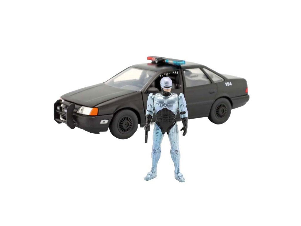 RoboCop 1986 Ford Taurus v měřítku 1:24 s detaily přesnými jako z filmu. Odolný model z kovu a plastu, vhodný pro věk 8 let a starší.