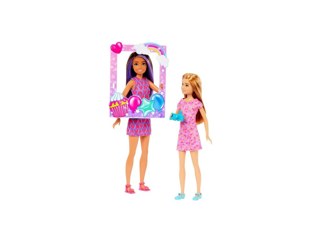 Sada Barbie sestra skipper a stacy sestra začnou natáčet s fotorámečkem na téma slavnostní party s fotoaparátem a fotografickými rekvizitami. Obsahuje fotorámečky, rekvizity duhových brýlí, balónky, střelecký stojan s prstencovými světly, chytré telefony, fotoaparáty a další příslušenství