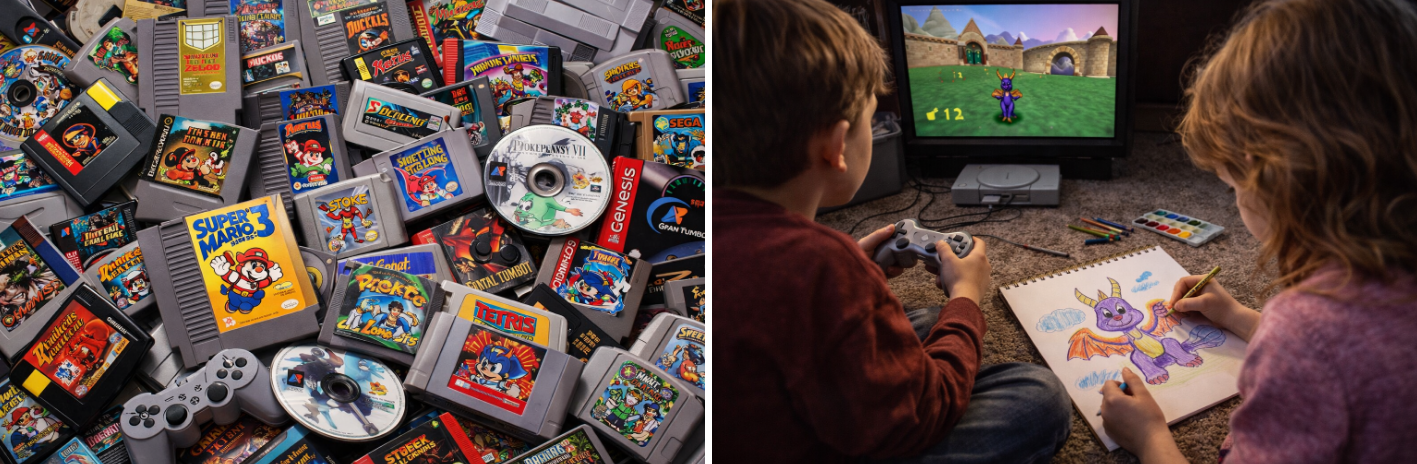 Přesně tak fungovaly klasiky jako Spyro the Dragon, Tetris nebo Sonic the Hedgehog. Vložil jsi cartridge, zmáčkl tlačítko a během pár sekund jsi byl ve hře. A když náhodou hra nefungovala? To byl doslova ikonický moment – Stačilo vytáhnout kazetu, fouknout do ní a zkusit znovu. Technicky nesmysl. Prakticky rituál. Vidím to jako včera.