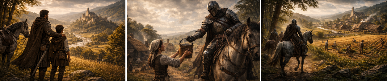 Seriál sleduje jejich putování Západozemím, rytířské turnaje i osobní střety. Nejde o globální konflikt. Jde o jednotlivce, o čest a o rozhodnutí, která sice neotřesou kontinentem, ale změní konkrétní lidské osudy. A kupodivu to stačí.