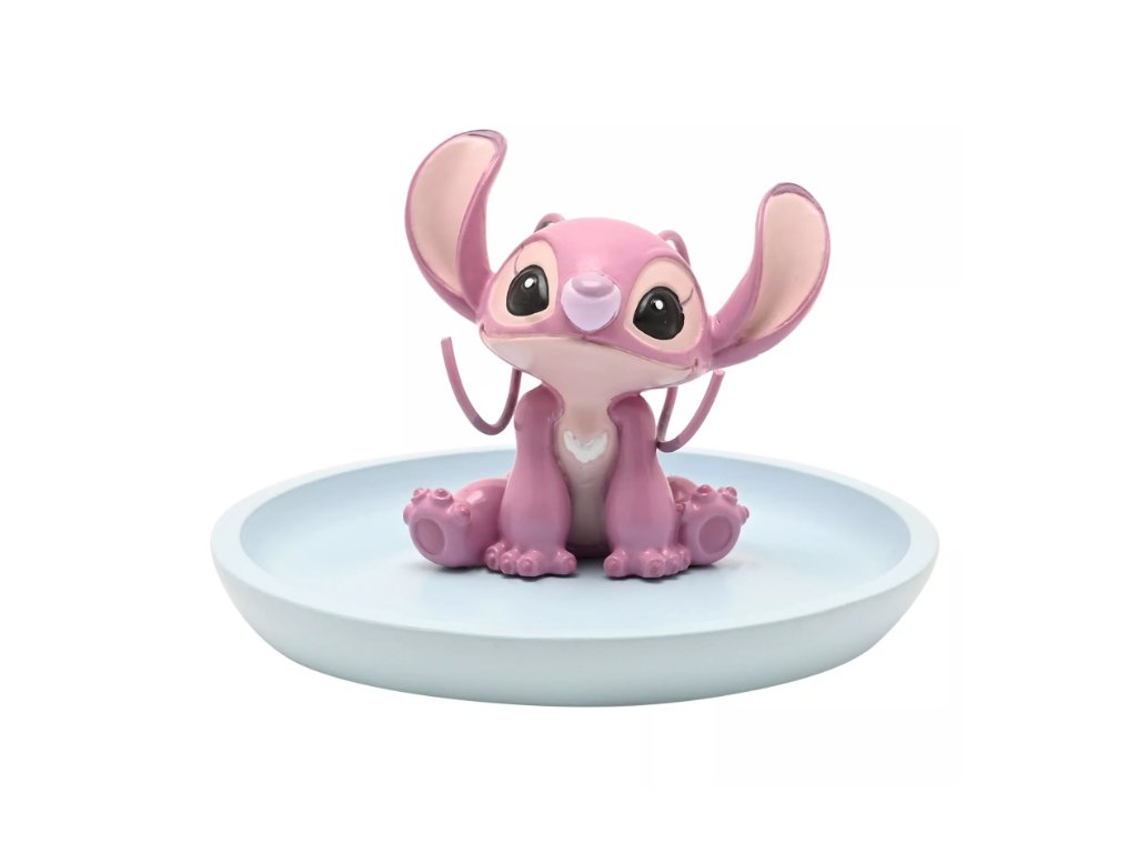 Tato kompaktní miska s šedou figurkou Stitche na růžovo-bílém podstavci je ideální pro uložení šperků, klíčů nebo drobných suvenýrů. Díky pastelovým tónům a detailnímu designu je zábavným doplňkem na psací stůl, poličku nebo noční stolek.