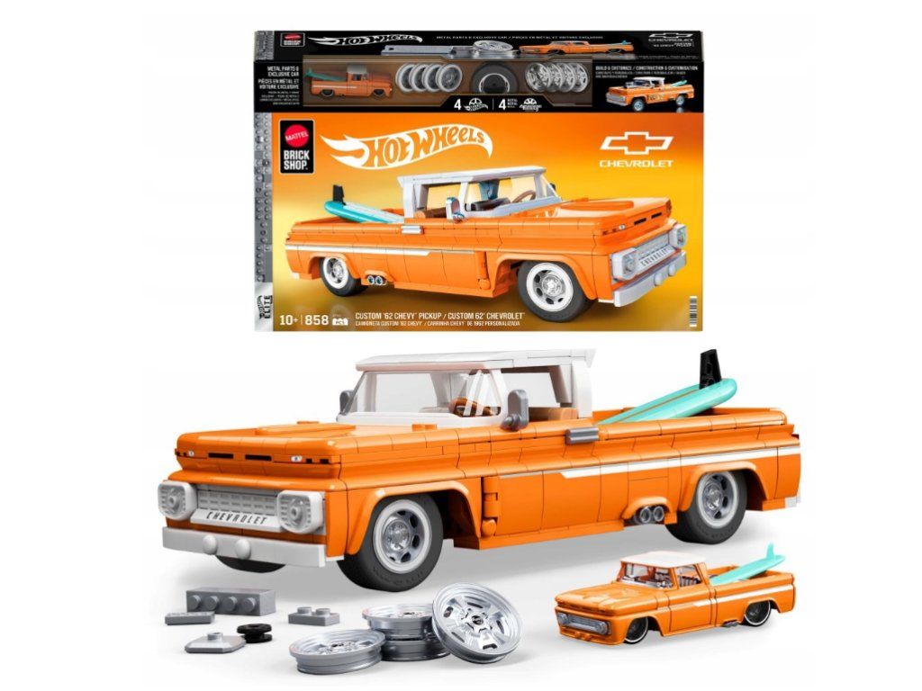 Mattel Brick Shop KLOCKKI HOT WHEELS Custom '62 Chevy Pickup je stavebnice pro dospělé sběratele a děti od deseti let. Zapněte si pásy a vyražte na dobrodružství s modelem auta v měřítku 1:16!