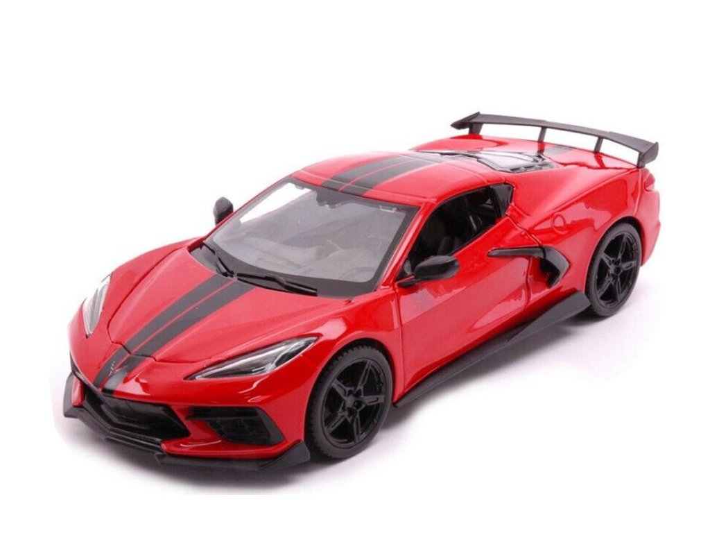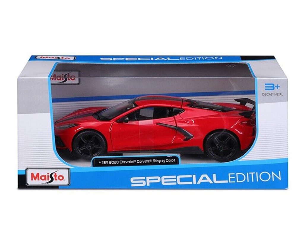 Special Edition 1:24 2020 Chevrolet Corvette Stingray Coupe, červené. Modely Special Edition jsou sbírkou krásného designu s vysokým důrazem na přesnost detailů. Modely jsou vyrobeny z litého kovu s plastovými detaily. Modely v měřítku 1:24 patří mezi nejoblíbenější. Většina z modelů Special Edition má otevírací dveře, kufr nebo kapotu. Baleno v krabičce. Nevhodné pro děti do 3 let. Rozměry balení: 10,5 × 23,3 × 11,4 cm. Věk 3+