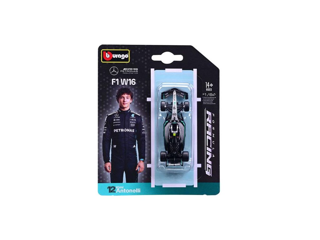 Přidejte do své sbírky nový Mercedes-AMG F1 W16 2025 #12, monopost svěřený mladému talentu Kimimu Antonellimu. Tento model v měřítku 1:64 zachycuje agresivní styl a technickou eleganci vozu z roku 2025 s oficiálními barvami a detaily věrnými originálu.