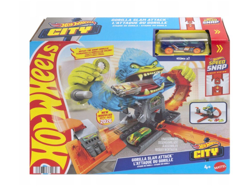 Závodní dráha HOT WHEELS HUNGRY GORILLA přenese děti do akcí nabitého dobrodružství, kde klíčem je odvaha, reflexy a přesnost. Tato vzrušující sada ze série Hot Wheels City promění obyčejný závod v napínavý souboj s impozantním soupeřem, kde každé rozhodnutí na trati vede k novému příběhu.