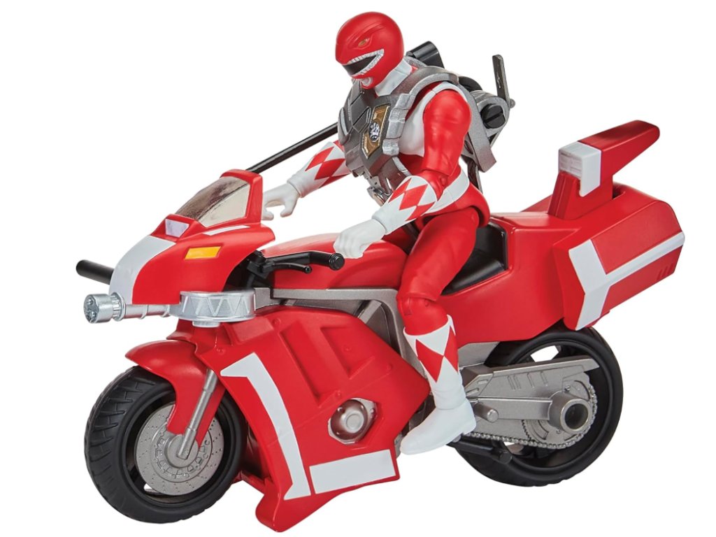 Polohovatelná a připravená ke hře: Polohovatelná figurka Červeného Rangera perfektně padne na motorku a je připravena k akčním pózám.