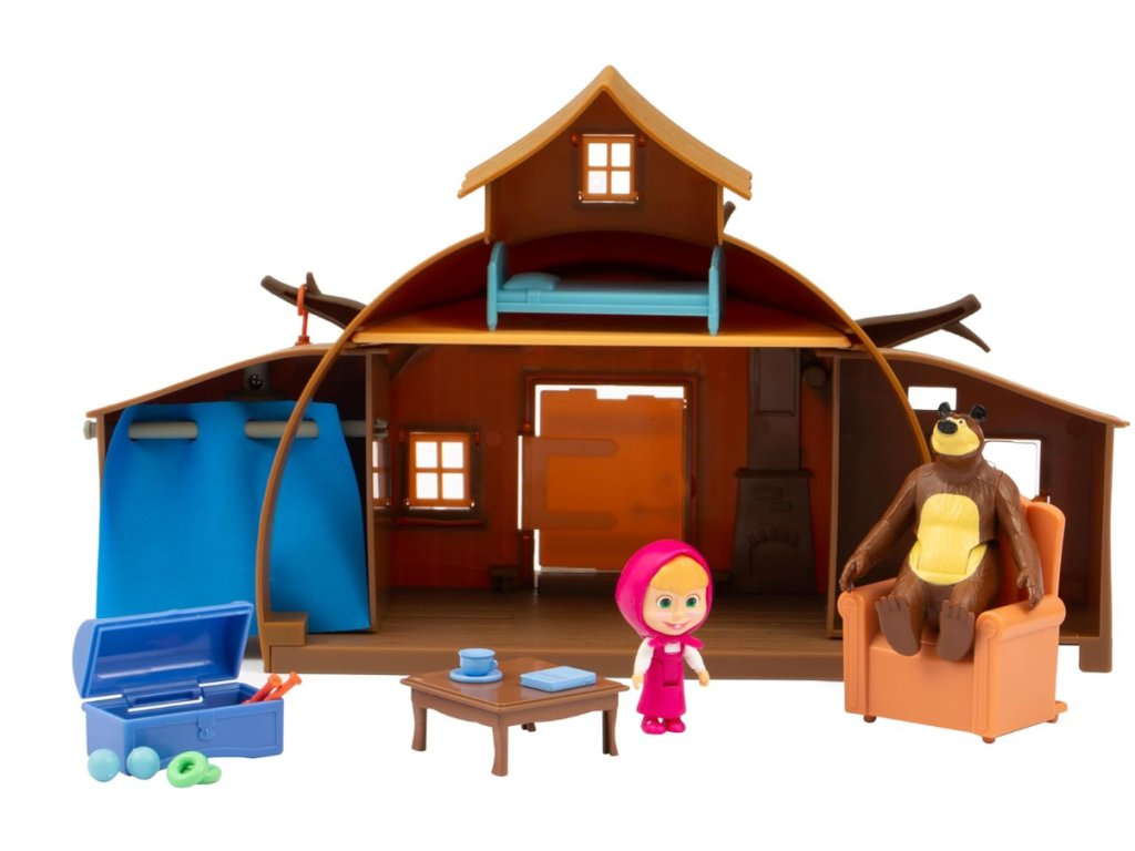 Přehrajte si všechny příběhy Mashy hraním si s domovem a doplňky. Má otevírací bočnice, 2 exkluzivní figurky Máša & Medvěd s klouby a také doplňky na hraní (postel, stůl, křeslo, otevírací truhla). Rozměr domečku (zavřený): 18cm (V)-22cm (L)-10cm (H). Celková délka s otevřenou stranou je 30 cm. Pro děti od 3 let.