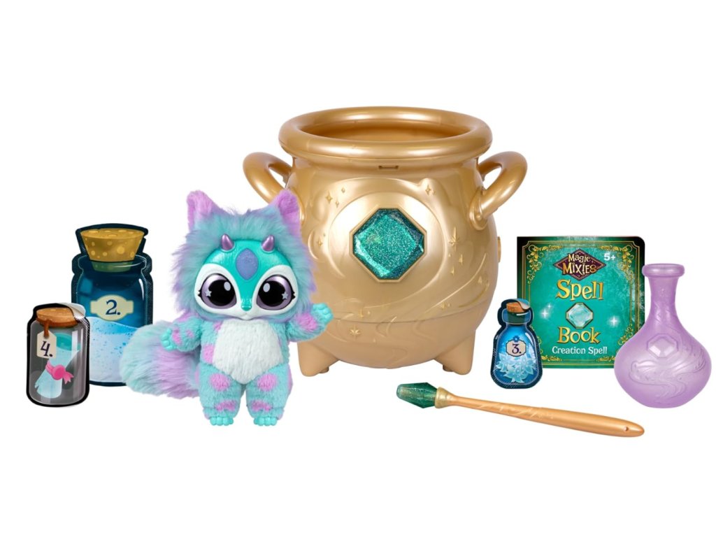 Zažijte skutečné kouzlo s Magic Mixies Magic Cauldron! Budete ohromeni tím, co se magicky objeví z mlhy, když dokončíte sesílání kouzla. Koho vytvoříš? Váš Magic Mixies Magic Cauldron je dodáván se všemi magickými ingrediencemi a speciální hůlkou, pomocí které můžete namíchat lektvar a vytvořit roztomilého chlupatého mazlíčka. Postupně přidávejte magické ingredience do svého magického kotle, přičemž každá z nich pomůže vašemu stvoření ožít. Při každém kroku kouzla klepněte hůlkou na kotlík. Poslouchejte, jak se z kotle začíná zvedat skutečná mlha. Právě jste si vytvořili kouzelného nového přítele! Vaše Magic Mixie je rozkošná a miluje mazlení. Magic Cauldron má přes 20 zvuků a reakcí.