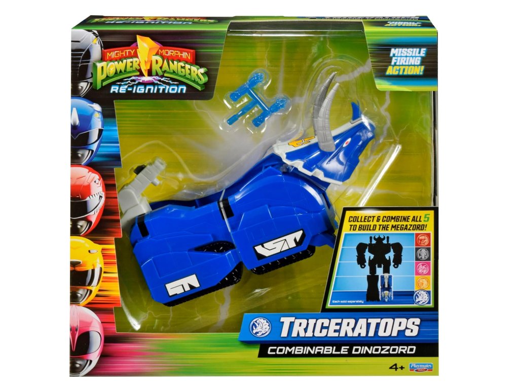 Triceratopse Dinozord měří 7,5″ na délku a je dodáván s raketovým projektilem.