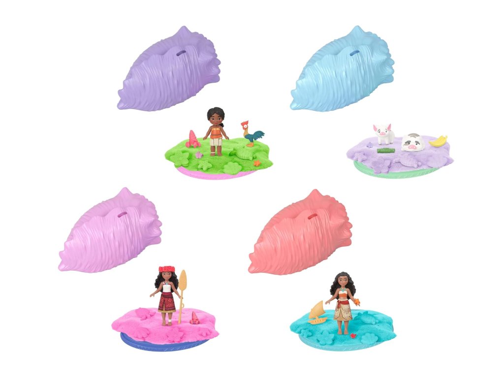 Otevřete krásnou mušli a odhalte panenku nebo sadu zvířecích kamarádů Disney Vaiana, každý v měřítku 3,5 palce. Kterou postavičku (postavičky) najdete?