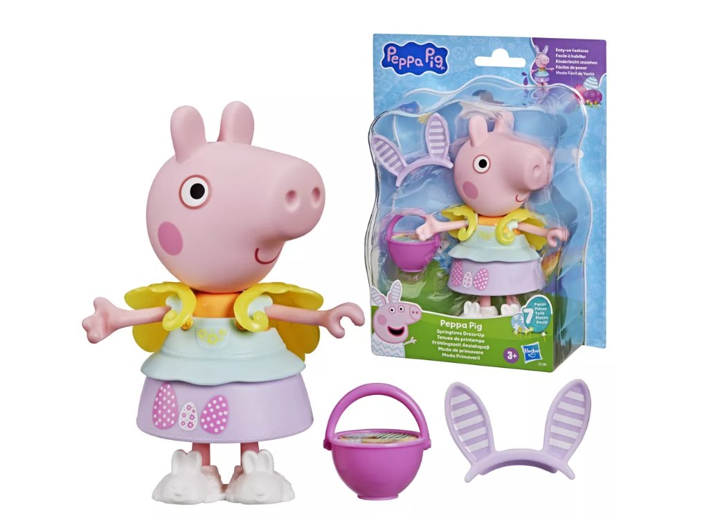 Oslavte jarní zábavu se sadou na jarní převlékání Prasátka Peppa! Děti si mohou obléknout 15 cm velkou panenku Peppu pomocí 6 snadno nasazovatelných jarních doplňků, včetně králičích uší, králičích bot, peříčkového kuřecího pláště a velikonočního košíku s vajíčky. Děti si mohou vynachválit jednotlivé dílky a vytvořit tak bláznivé kombinace! Přidejte do hry s oblékáním ještě více možností kombinování a kombinování s dalšími panenkami na převlékání podle oblíbených kamarádů Prasátka Peppa (každá se prodává samostatně, v závislosti na dostupnosti). Tyto hračky Peppa pro 3leté holčičky a chlapce a starší jsou zábavnými dárky pro každé dítě, které miluje herní sady Prasátka Peppa.