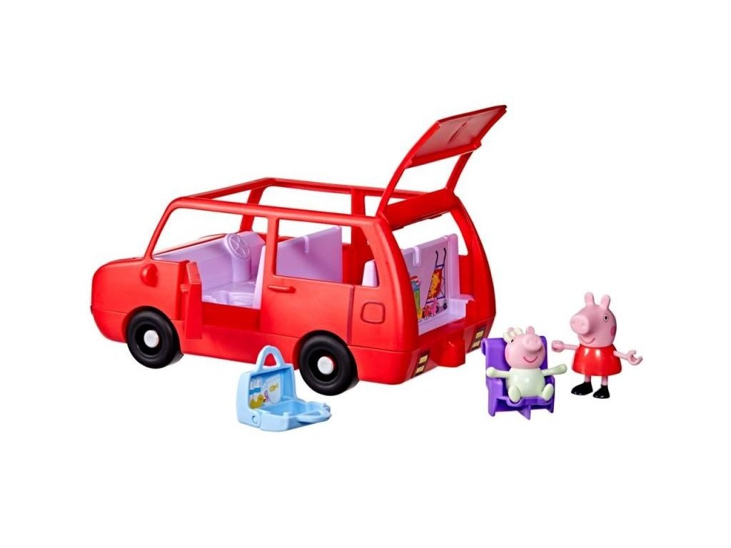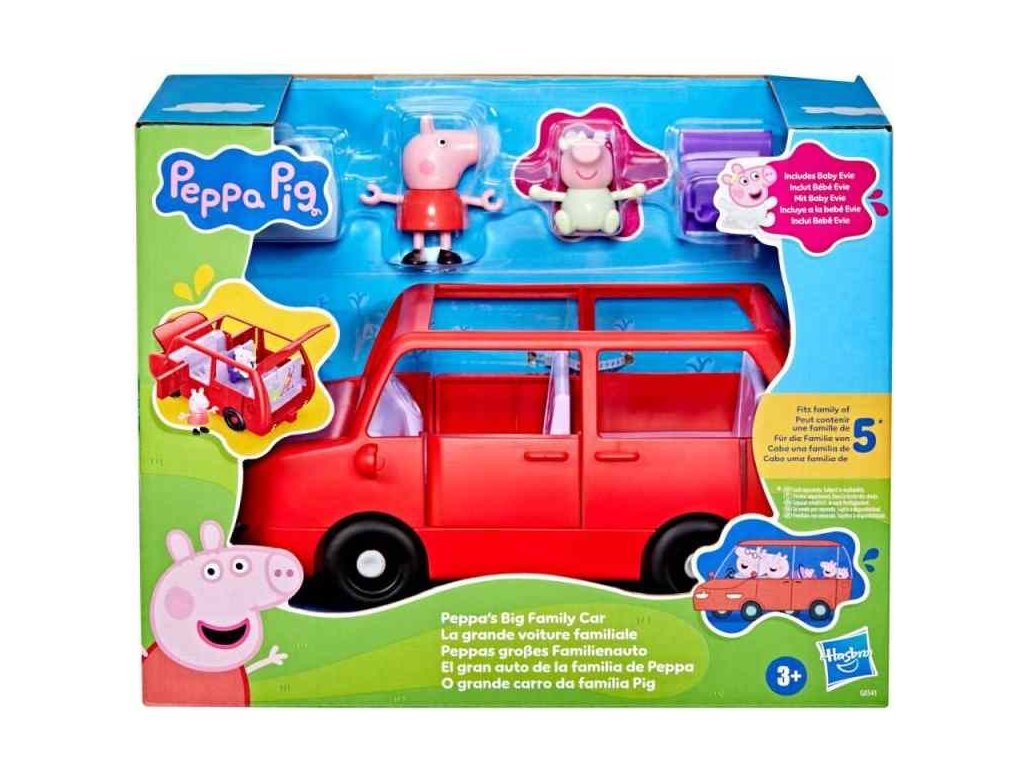 Vydejte se na dobrodružství s velkým rodinným autem Peppa Pig. Toto autíčko s prasátkem Peppou obsahuje dvě figurky o velikosti 7,5 cm – Peppu a její rozkošnou sestřičku Evie.