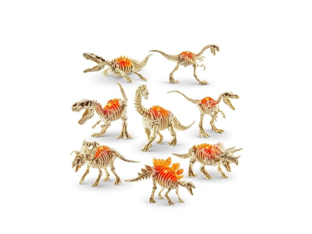 Překop se skálou, pískem a slizem pomocí krumpáče, aby si našel všechny kousky dinosaura. Po složení kostry dinosaurus ožije. Po bouchnutí dinosaurus spustí řev a rozsvítí se mu břicho. Balení obsahuje: sliz, písek, krumpáč a díly pro sestavení dinosaura. Výška vejce je 18 cm. Obsahuje nevyměnitelné baterie.