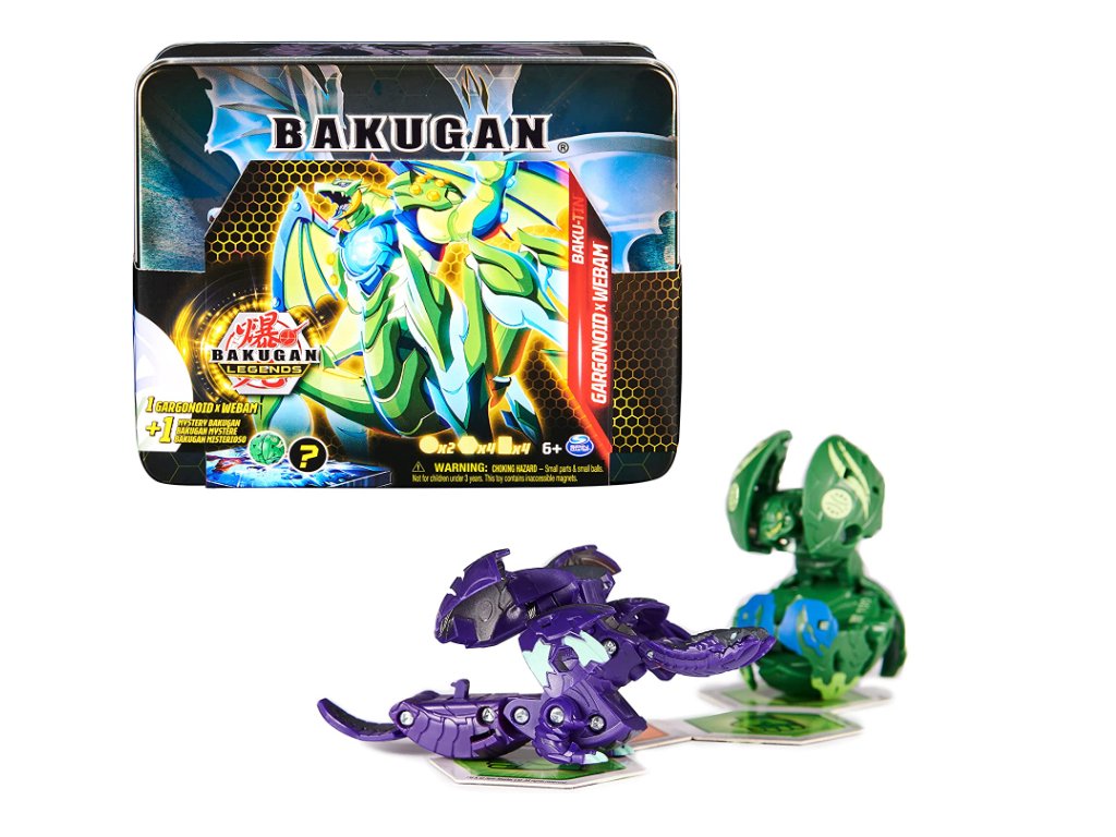 Stylový plechový box v novém designu, který pojme až 6 Bakuganů, 2 balíčky 40 karet a 12 Baku-žetonů. Balení obsahuje 1 plechový box s víkem, 1 exkluzivní Bakugan, 1 tajemný Bakugan, 4 Baku-žetony, 2 karty charakteru, 2 Gate karty. Vhodné od 6 let.