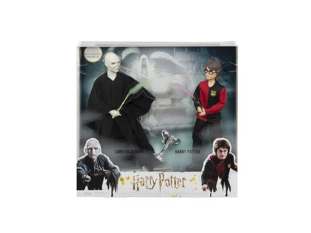 Připomeň si nejznámější scénu v boji dobra proti zlu, kdy proti sobě stanuli tváří v tvář Harry Potter™ a Lord Voldemort. V tomto balení na tebe čekají dvě panenky, které vznikly na motivy oblíbených filmů o mladém kouzelníkovi a jeho přátelích. Obě panenky jsou oblečeny do propracovaných oblečků, které jsou věrnou kopií oblečení, které tyto postavy oblékly při legendární bitvě. Součástí jsou i tematické doplňky, mezi kterými najdeš například Pohár tří kouzelníků a kouzelnické hůlky pro oba kouzelníky. Díky luxusnímu balení jsou tyto postavičky skvělým sběratelským kouskem, který udělá radost všem milovníkům těchto knih a filmů.