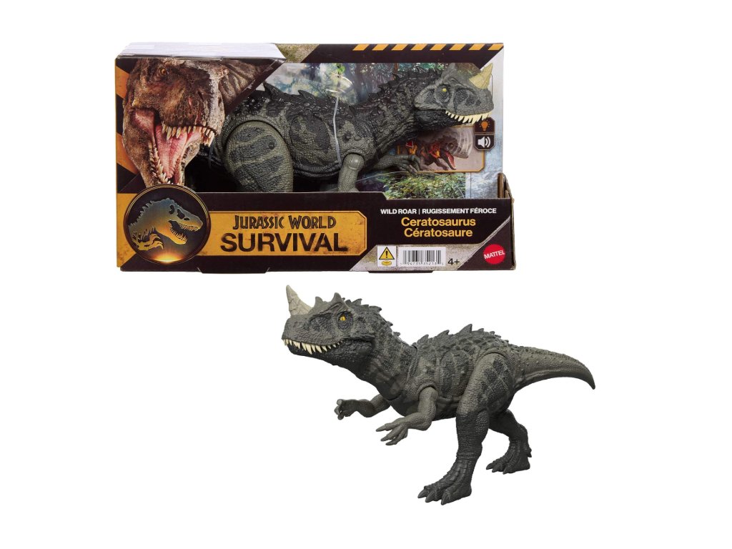 Útok, světla, zvuk! Tato hračka Jurský svět: Divoký řev Ceratosaura má útočný pohyb, zvukové a světelné efekty pro vzrušující hraní s dinosaury.
