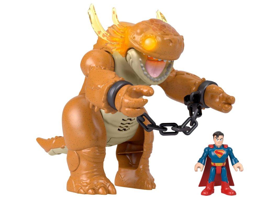 Malí fanoušci superhrdinů se mohou doma ponořit do vzrušení ze světa Supermana s touto figurkou Imaginext od Fisher-Price. Hračka obsahuje 8 cm vysokého Supermana a jednoho ze záporných nepřátel filmu – Kaiju! Záhadné monstrum, tyčící se nad superhrdinou s výškou 25 cm, ožívá pomocí světel, zvuků a akce. Tlama chroupe, paže se houpou a figurka Supermana se připevňuje k řetězům pro epický souboj! Mechanismy ovládané dětmi padnou do malých ručiček a pomáhají zdokonalovat jemnou motoriku. Fanoušci od 3 let si mohou znovu prožít oblíbené okamžiky nebo si vymyslet vlastní nové příběhy o boji dobra a zla! Barvy a dekorace se mohou lišit.