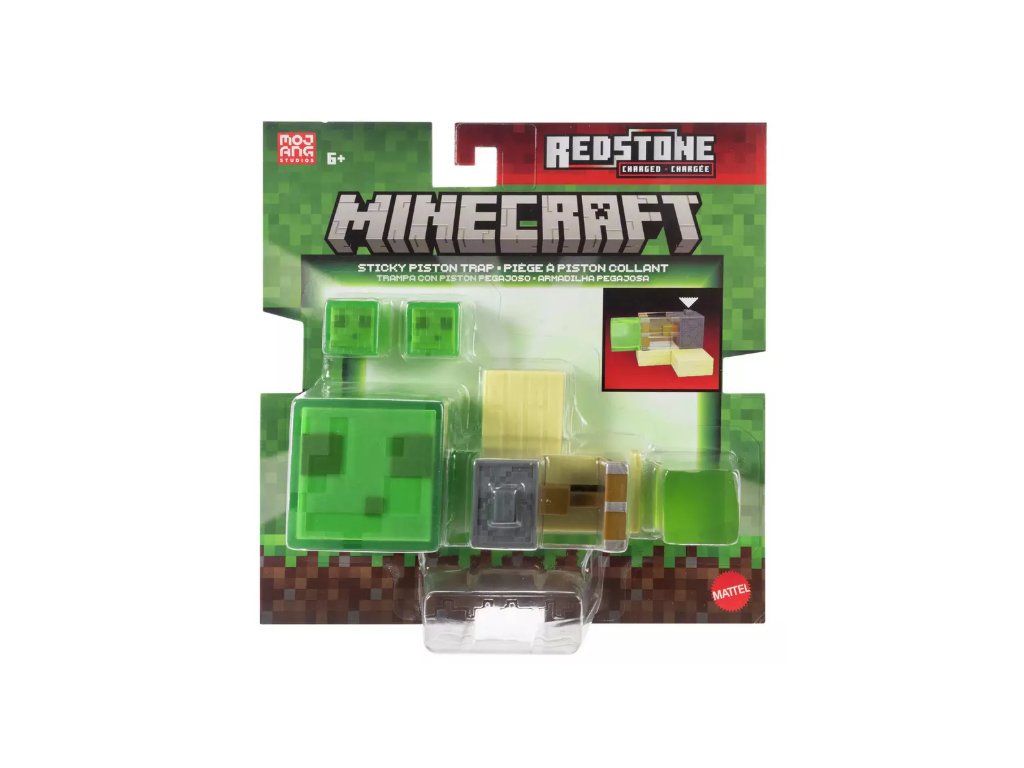 Svět Minecraftu se rozšiřuje díky „síle Redstone“ se sadou Minecraft Redstone Charged Sticky Piston Trap. Obsahuje jednu super lepkavou a měkkou figurku Slime Block, jednu past „Redstone Charged“ a dva menší doplňky pro zombie. Sada byla speciálně navržena designéry Minecraftu s akčním mechanismem Sticky Piston, aby fanoušci mohli znovu vytvořit akci z videohry v reálném životě. Každá sada je zábavná na sbírání a představuje vzrušující dárek pro fanoušky Minecraftu od 6 let.
