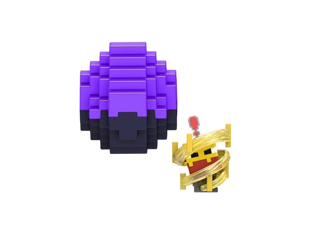 Otevřete opakovaně použitelnou schránku ve tvaru vajíčka z Minecraftu a objevte uvnitř minifigurku v animované póze určené k vyprávění příběhů.