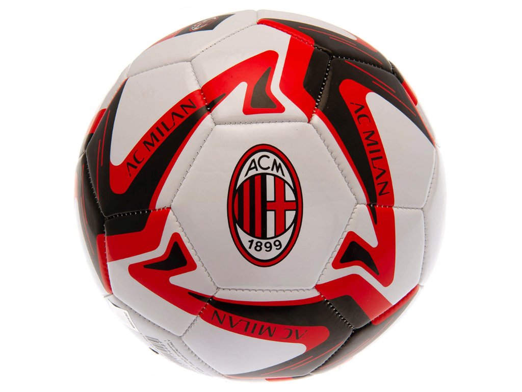 Míč kopací AC Milan Official - materiál čtyřvrstvý PVC Metalic, velikost 5, váha 400g +/-10g strojově šitý, duše je z kvalitního butylu. Míč je příjemný pro hru svým měkčeným materiálem a je vhodný na měkké povrchy jako například tráva. Není příliš vhodný na asfalt a beton.