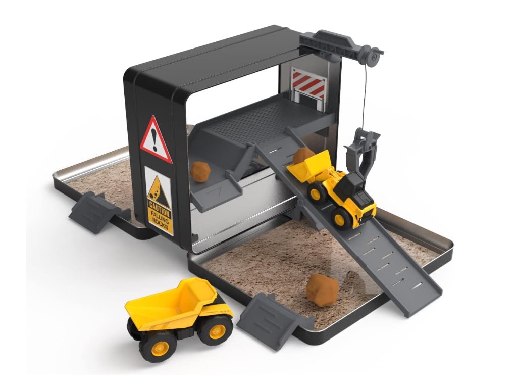 Sada Cat Little Machines Store ‘N Go umožňuje malým stavitelům vzít si staveniště s sebou, kamkoli jdou. Odolný klasický plechový úložný box se snadno promění v víceúrovňové pracoviště. Otevřete plechový box a odhalíte sadu se 2 vozidly Little Machines™, příslušenstvím, jako jsou dopravní značky, kužely a balvany, magnetickými samolepkami, rampami a funkčním jeřábem! Tato sada s více než 10 dílky jistě inspiruje fantazii vašich malých stavitelů. Po skončení hry jednoduše vše vraťte do plechového přepravního boxu pro pohodlné skladování. Skutečné kočičí stroje jsou známé svou vysokou kvalitou a tyto hračky nejsou výjimkou, jsou vyrobeny tak, aby odolaly nepříznivým vlivům, a jsou ideální pro hraní uvnitř i venku. Vhodné pro děti od 3 let.