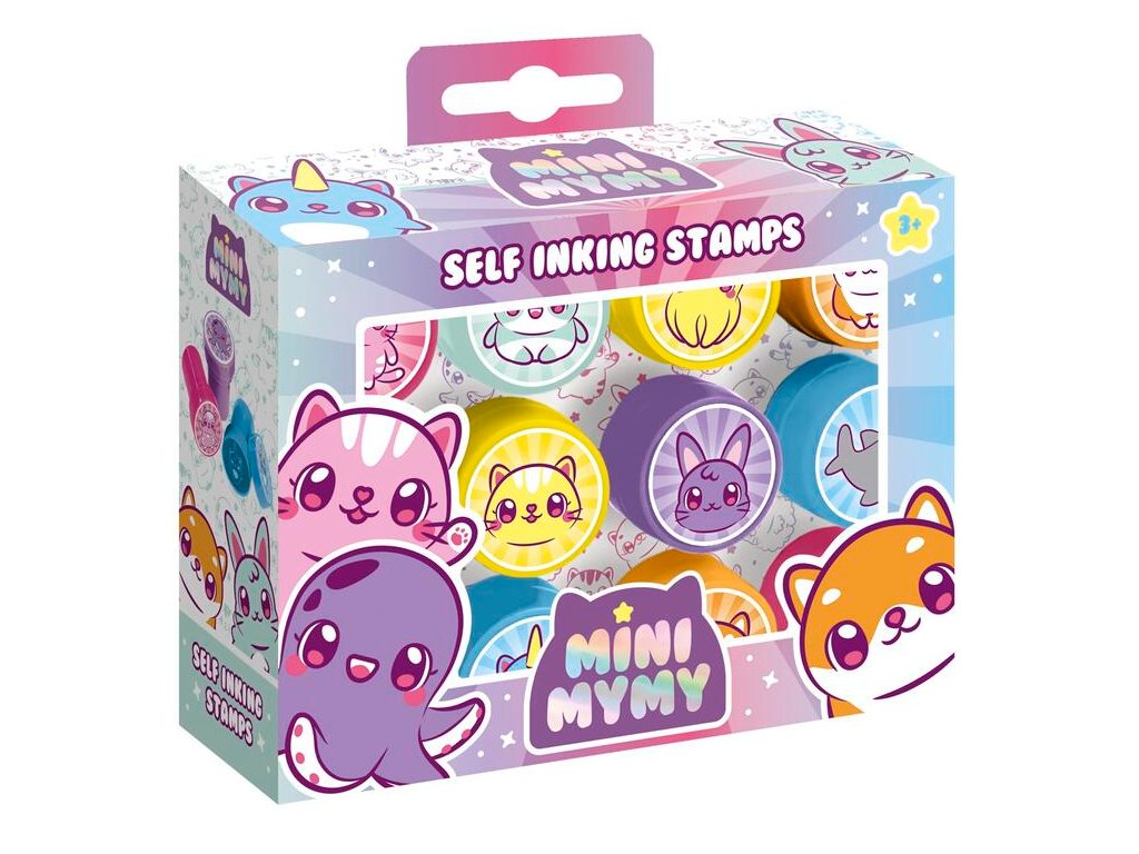 Samotiskací inkoustová razítka s motivy MINI MYMY. 12 motivů v sadě.