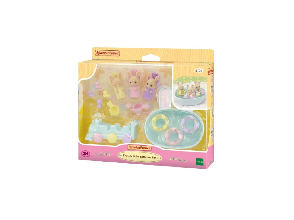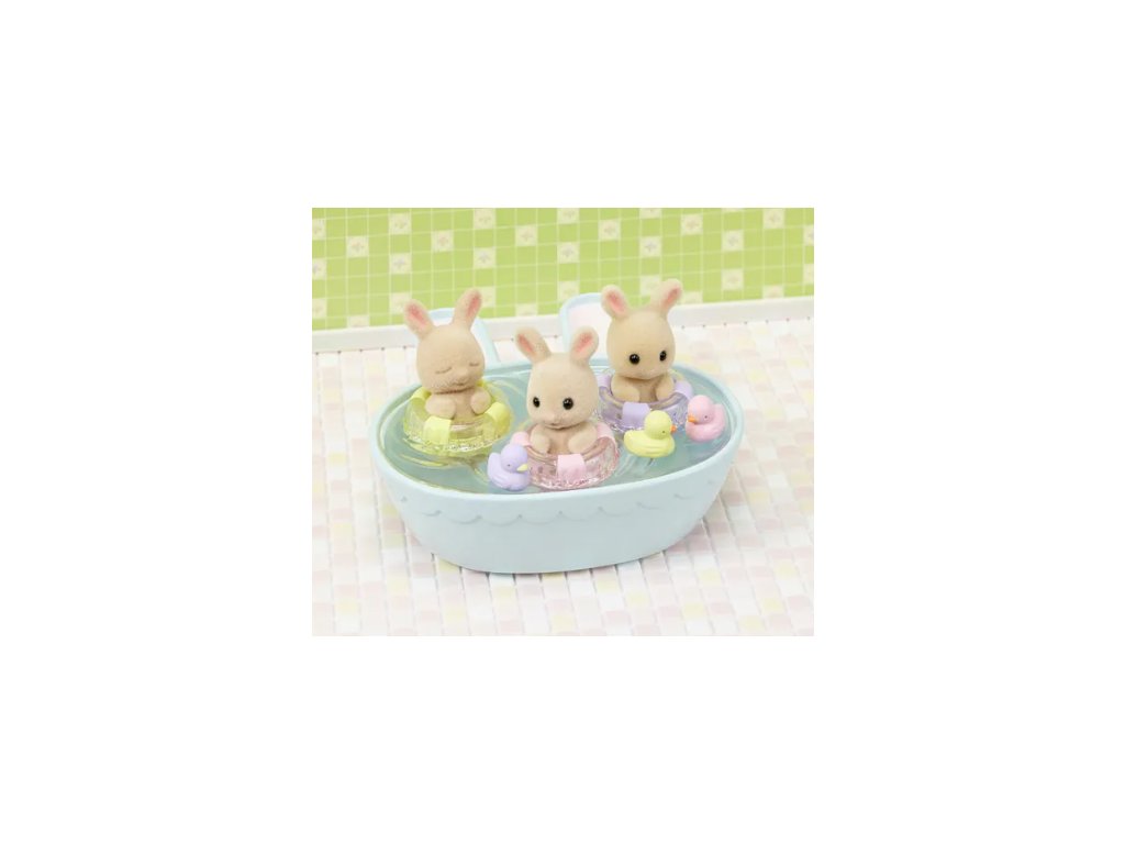 Hrací sada Sylvanian Families Mléčný králíček na koupání nabízí skvělou zábavu s malými trojčaty Mléčného králíčka.