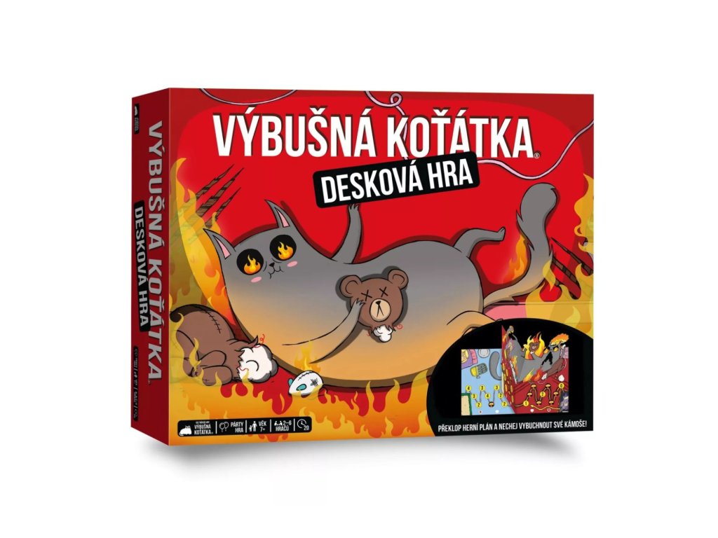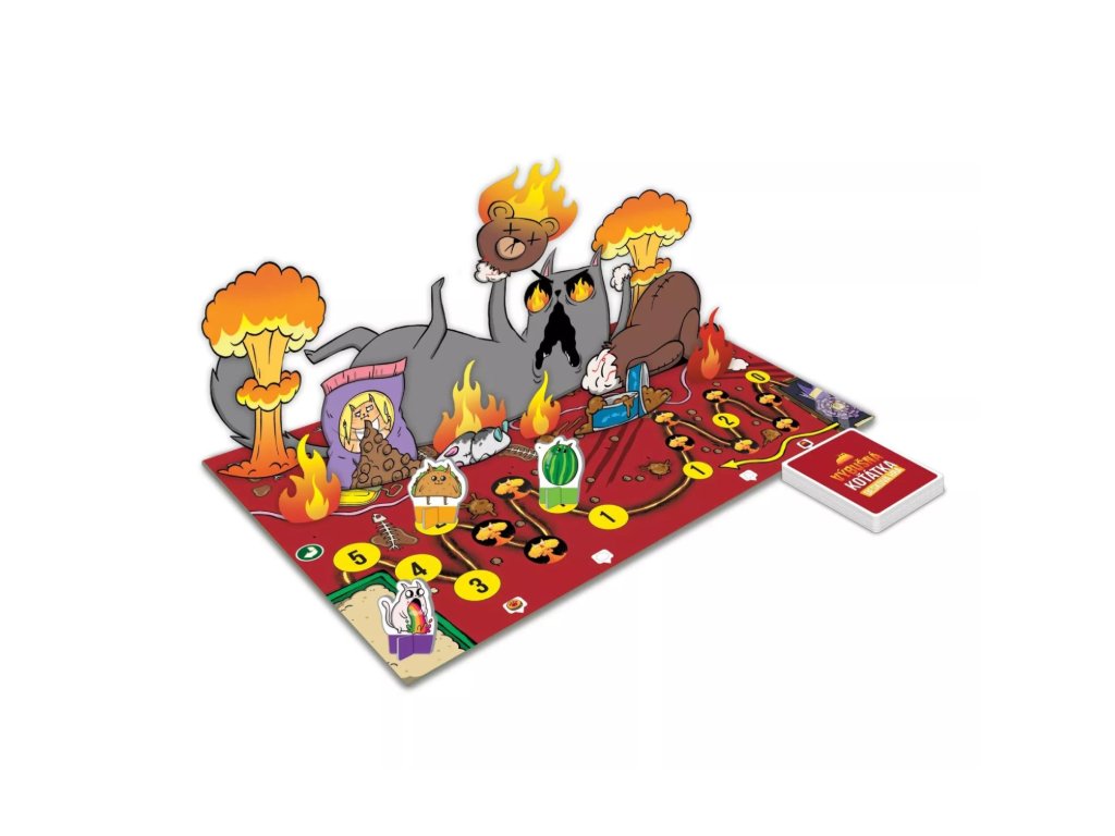 Desková hra plná rozkošných koťat a výbušné zábavy. Dostaň se na konec hracího plánu v jednom kuse, vyhýbej se vybuchujícím políčkům a sabotuj své soupeře. Jeden nesprávný krok a celý herní plán se převrátí. Hra vhodná pro 2-6 hráčů. Balení obsahuje 1 herní plán, 64 akčních karet, 6 figurek a pravidla.