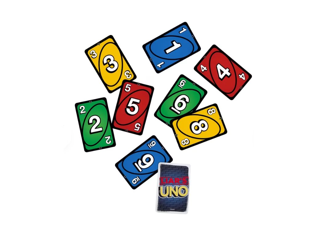 Fanoušci hry UNO si zamilují tuto verzi klasické karetní hry, kde se lžou a lháři vyhrávají! „Karta lháře“ se hraje lícem dolů a hráč oznámí, co to je. Říká pravdu, nebo blafuje? Pokud je hráč vyzván a je přistižen při lži, musí si líznout kartu. Pokud ale říká pravdu, musí si líznout kartu žalobce. Zachovejte si tedy vážnou tvář, skryjte jakékoli prozrazení a když vám zbývá jen jedna karta, nezapomeňte zakřičet „UNO“! Skvělý dárek pro fanoušky karetních her od 7 let.
