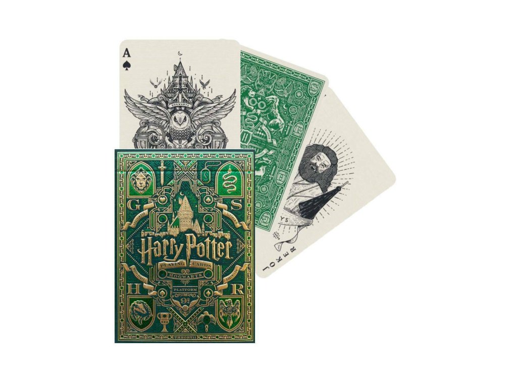 Prémiové hrací karty od theory11 obsahující všechny vaše oblíbené postavy ve čtyřech úchvatných barevných edicích, které představují čtyři rody Bradavic: Nebelvír, Zmijozel, Havraspár a Mrzimor! Prožijte znovu ty nejpamátnější okamžiky ikonické série pokaždé, když jsou karty vytaženy ke hře. Vaše oblíbené postavy byly přivedeny k životu! Harry hrdě drží Zlatou zlatonku a jeho Nimbus 2000. Voldemort mává hůlkou vyrobenou z tisu. Snape učí hodiny lektvarů se svou učebnicí Advanced Potion Making. Luna Lovegood provozuje svůj podpis Spectrespecs spolu s mnoha dalšími postavami!