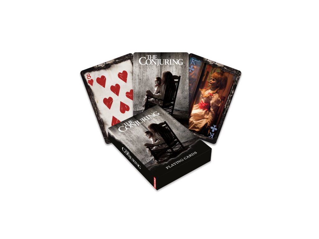 Troufáte se rozdat ruku s duchy? Hrací karty Conjuring nejsou pro slabé povahy. Každé zamíchání může probudit něco starobylého, každá karta letmý pohled na hrůzu rodiny Perronů nebo Annabellin mrazivý pohled. Jste připraveni čelit temnotě, která se skrývá v balíčku? Hrajte, pokud se odvážíte, ale neříkejte, že jsme vás nevarovali, až začne tleskat. Některé dveře, jakmile se jednou otevřou, už nikdy nemohou být zavřeny.