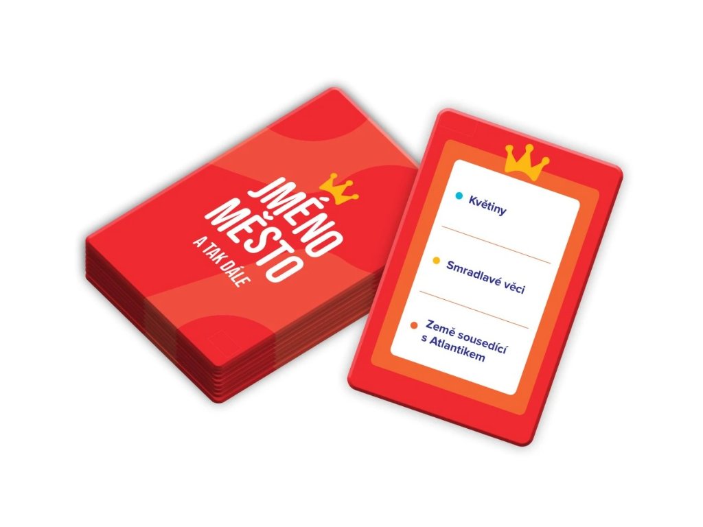 JMÉNO, MĚSTO A TAK DÁLE je unikátní mix karetní party hry a všem dobře známé slovní hry ze školních lavic. Zbavte se z ruky karet s písmeny vymýšlením slov v roztodivných kategoriích. Znáte sport na R? Značku piva na Z? Animovanou postavičku na E? Přísadu na pizzu na O? Snadné, že? Jen do té doby, než někdo zahraje akční karty, které dokážou celou hru pěkně zamotat!