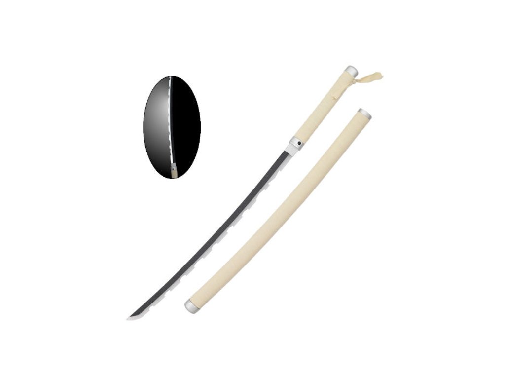 Katana s vnitřním LED světlem, inspirovaná katanou Inosuke Hashibiry z anime seriálu Demon Slayer.