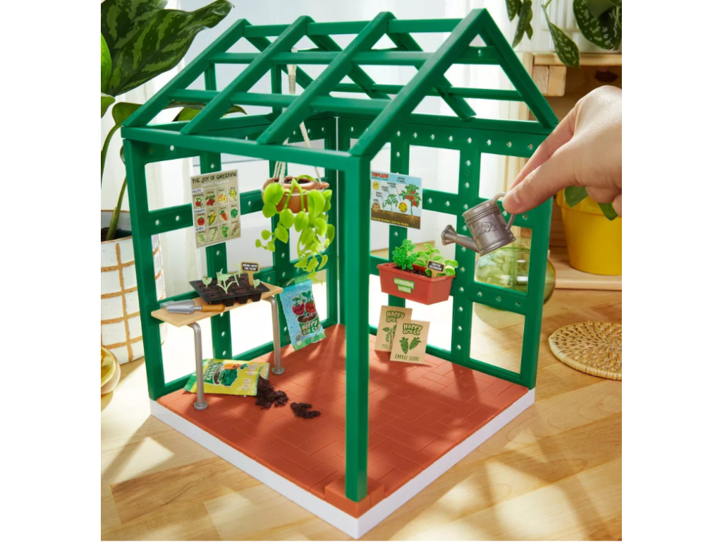 Otevřete si dokonalý zážitek z mini stavění! Každý balíček skleníku obsahuje vše, co potřebujete k vytvoření svého prostoru – dva nástěnné panely, dlaždicový podlahový panel, střechu, mini stůl a svazek drobných rostlin a materiálů k dekoraci a stylizaci vaší scény.