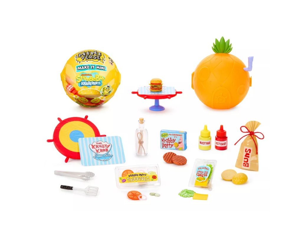 Každá překvapivá koule je plná realistických „ingrediencí“ a doplňků s motivem SpongeBoba, abyste si mohli vytvořit mini repliky svých jídel a momentů ze seriálu! Od Krabího placičky, přes Kelp Shake až po Pretty Patties, zábava spočívá v tajemství! V této sérii je k sebrání 8 kusů! Podívejte se do sběratelského průvodce a zjistěte, kterou mini kouli jste rozbalili. Poté se řiďte kartou s „receptem“ a vytvořte si svůj mini sběratelský předmět, nebo jej pro ještě větší zábavu zkombinujte s #MiniverseRemix!
