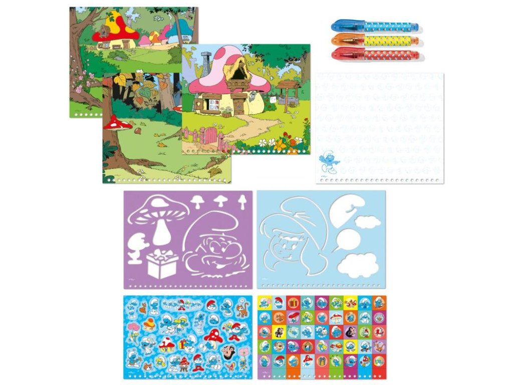 Obsahuje: 2 archy samolepek, 2 archy šablon, 3 herní scény, 20 kreslicích stránek, 3 gelové pera.