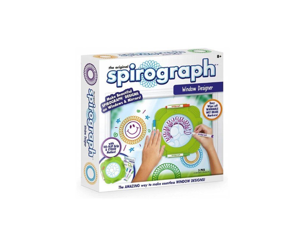Sada pro kreslení Window Designer je skvělý nástroj, který se osvědčí pro všechny děti již od 8. roku života. Spirograf v takové konfiguraci umožňuje vytvářet geometrické vzory na skleněných površích. Bezpečnými fixy můžete ozdobit skla, zrcadla nebo skleněné rámy na fotografie. Souprava obsahuje speciální podložku, která má povlak zabraňující klouzání po skle, a také 4 fixy v různých barvách, které lze snadno smýt nebo vyprat.