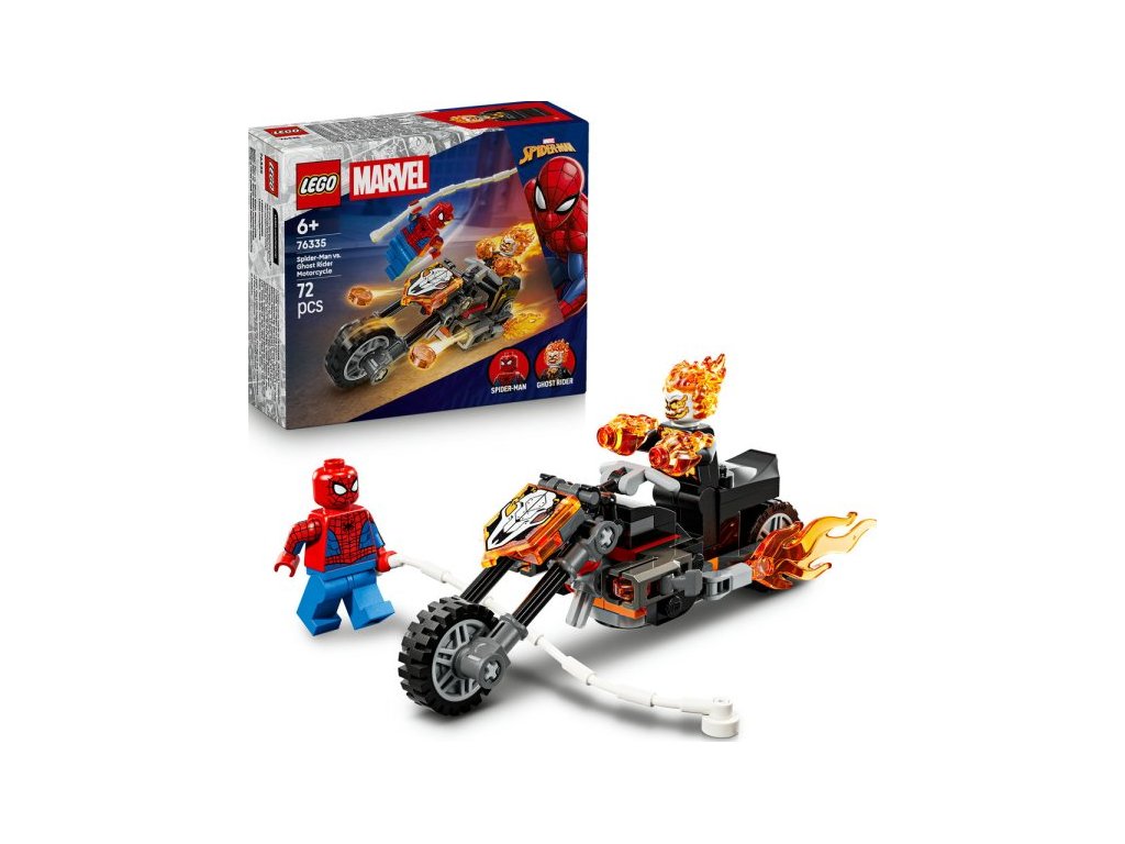 Vydejte se na superrychlou honičku se superhrdiny se stavebnicí Spider-Man vs. Ghost Rider na motorce (76335) pro holky a kluky od 6 let. Stavebnice LEGO® | Marvel s bojovou motorkou a dynamickou minifigurkou Spider-Mana a Ghost Ridera inspiruje děti k nápaditému hraní.
