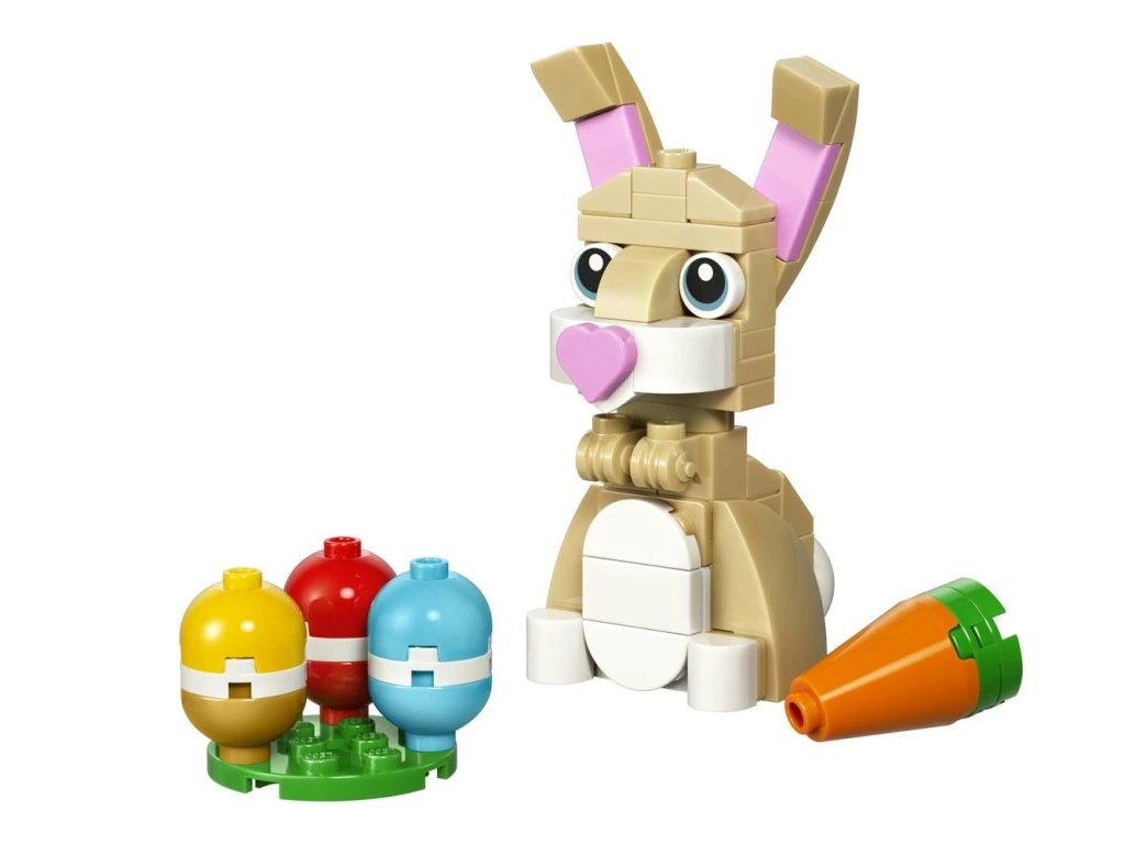 Vykouzlete o Velikonocích dětem od 6 let úsměv na tváři se stavebnicí LEGO® Roztomilý velikonoční zajíček s pohyblivýma dlouhýma ušima, 3 barevnými velikonočními vajíčky a mrkvičkou.