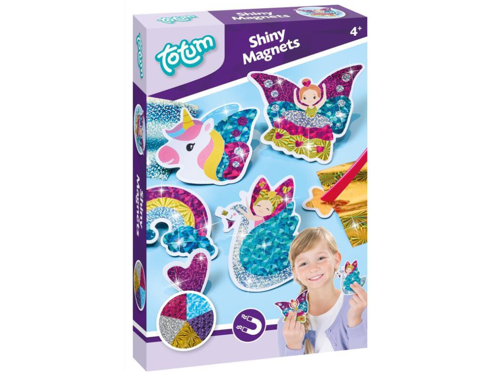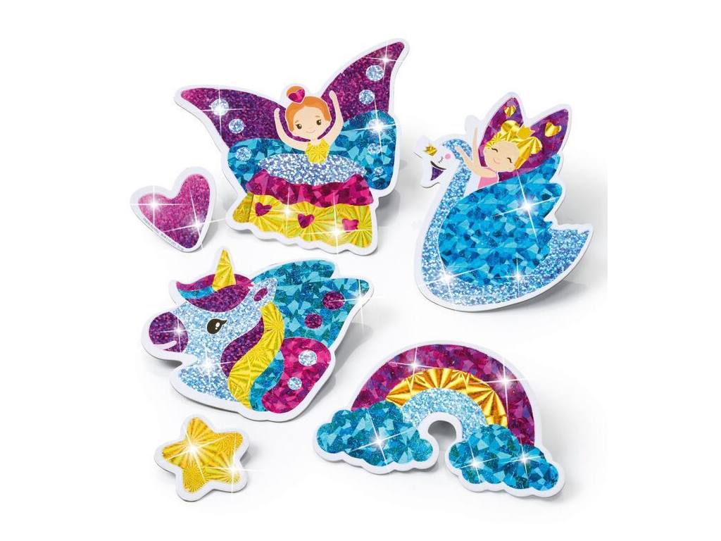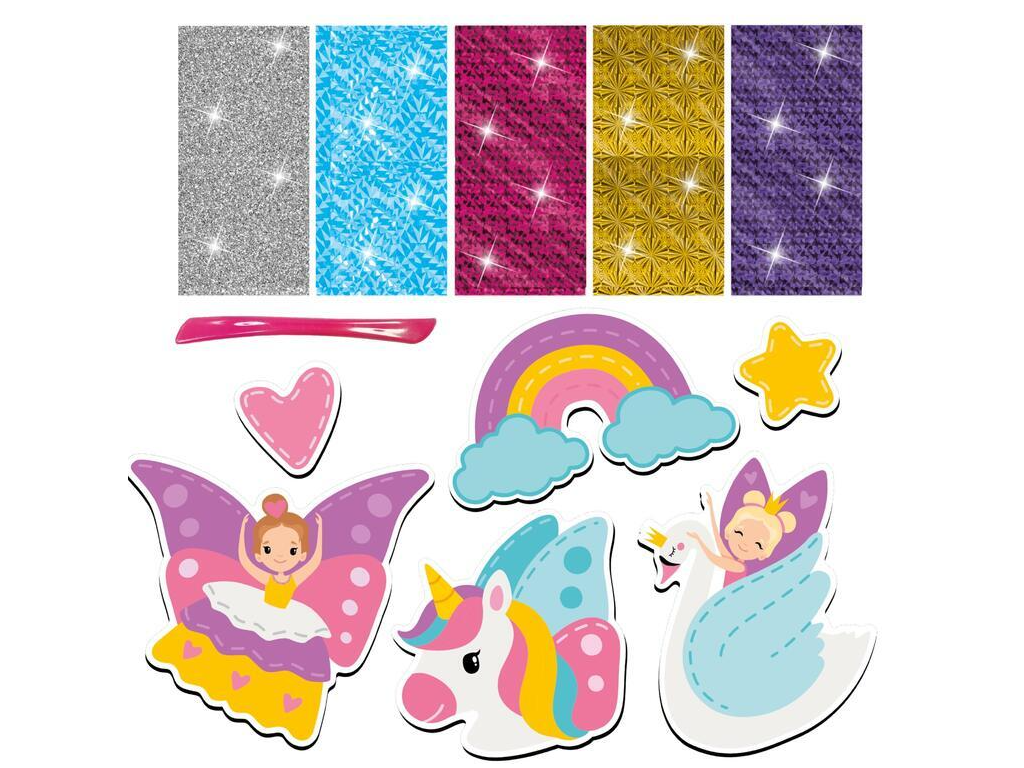 Vyrobte si vlastní lesklé magnety (6 kusů) pomocí alobalu (10 listů) a nástroje s motivy jednorožce a víly.