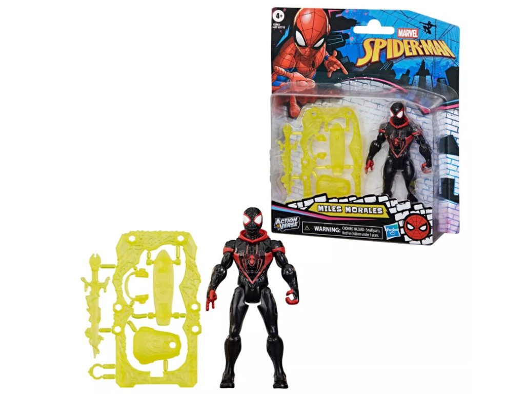 Dopřejte hraní silný impuls s touto figurkou Milese Moralese, která má 9 kloubových bodů pro pohyblivou hru a vystavení s hlavou v pavučině. Každá 11,4 cm velká akční figurka superhrdiny ActionVerse se dodává s několika odnímatelnými doplňky inspirovanými postavami a také s opakovaně použitelným stojanem na příslušenství. Děti od 4 let si zamilují představování vlastních vzrušujících dobrodružství s touto figurkou Milese Moralese, která je perfektním dárkem k narozeninám, svátkům a dalším příležitostem!
