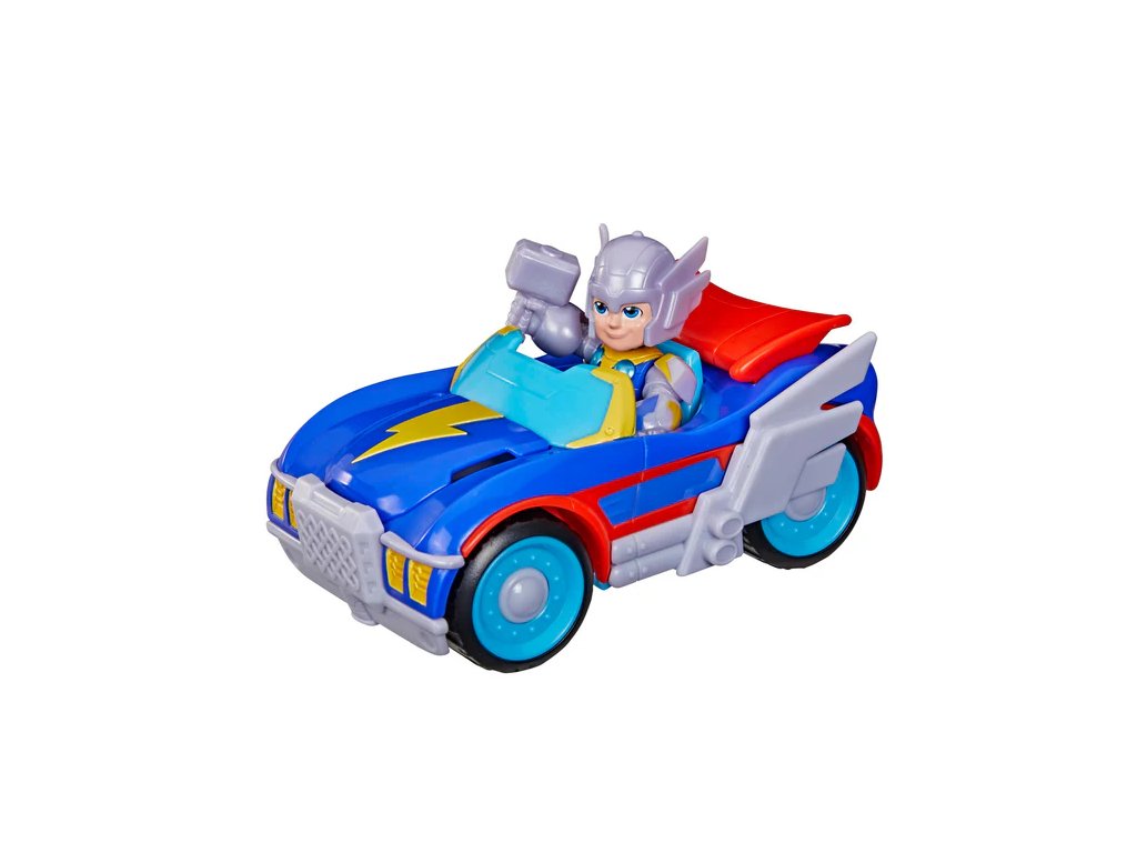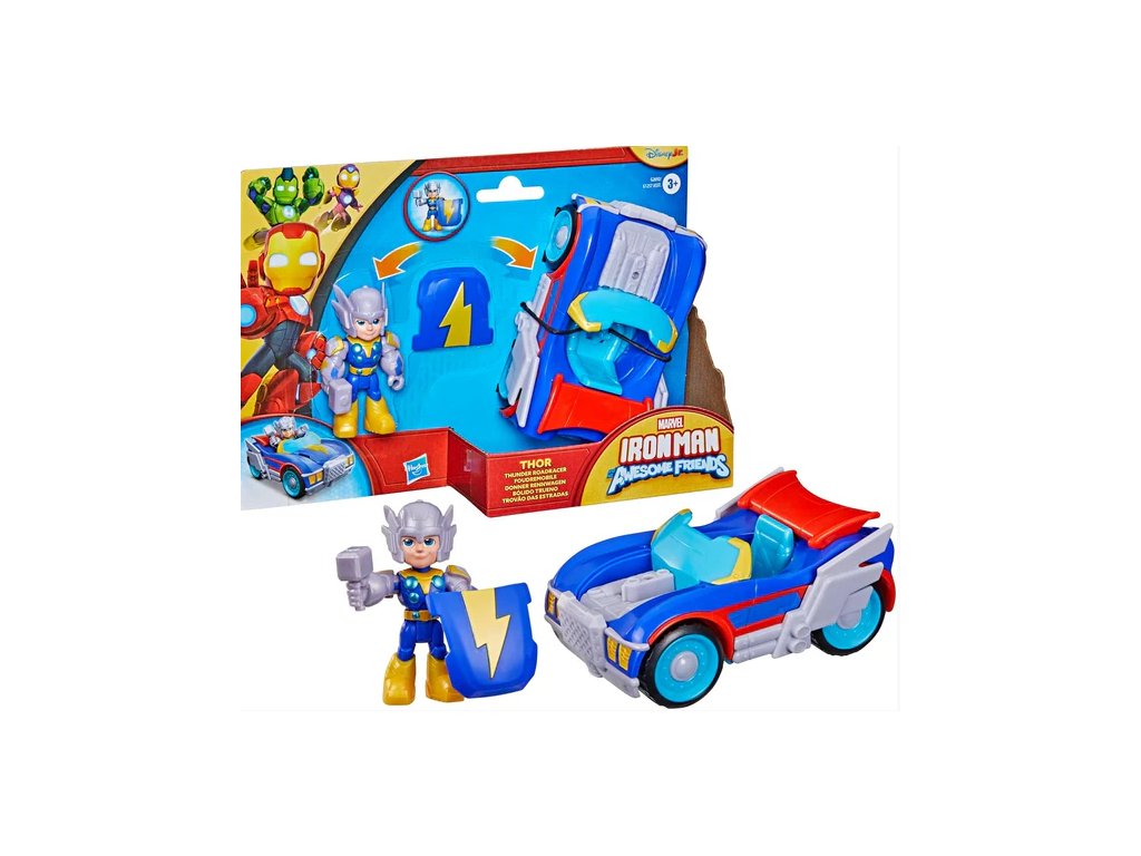 Děti si s touto sadou akční figurky a autíčka Thor Thunder Roadracer dokáží představit, jak se připojují k týmu Iron Man na jejich nejnovějších dobrodružstvích! Tato stavebnice s vozidlem o velikosti 7,6 cm (3 palce) je dodávána s polohovatelnou hračkou Thora, která se vejde dovnitř závodního auta. Představte si, že se vrhnete do akce, abyste zachránili situaci, nebo sejměte odnímatelnou kapuci 2 v 1 z Thunder Roadraceru, připevněte ji na ruku figurky, abyste ji zbrojili, a pak předstírejte, že se vrháte do kladiva! Podpořte velké, nápadité a dobrodružné hraní u dětí od 3 let s těmito hračkami Marvel pro chlapce i dívky! Sledujte další hračky Iron Man a jeho úžasní přátelé, včetně parádních akčních figurek, herních sad a vozidel, s nimiž si můžete sestavit sbírku superhrdinů nebo je darovat jako dárky Marvel pro předškolní děti!