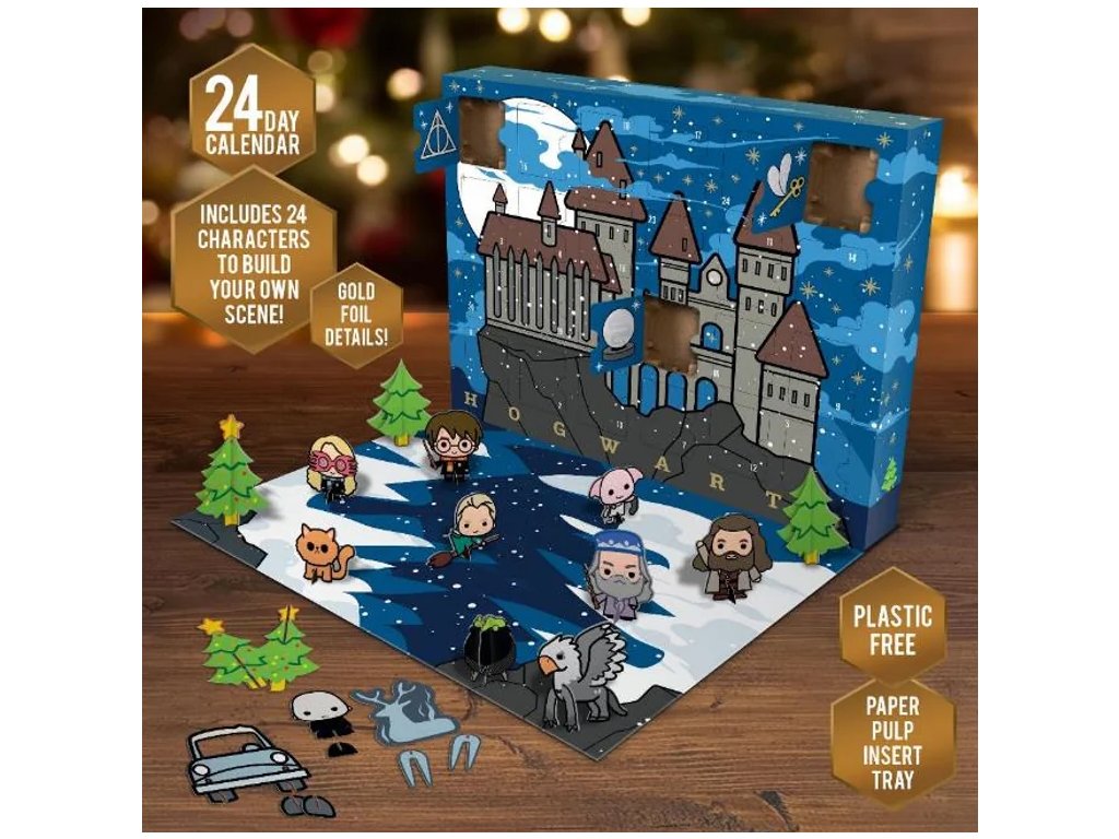 Adventní kalendář Harry Potter obsahuje 24 puzzle postaviček a rekvizit pro vytvoření 3D scény, bez plastů