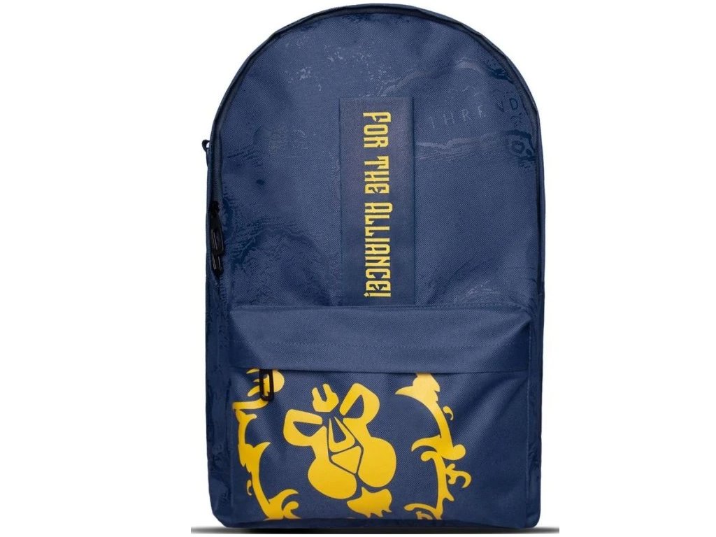 Tmavě modrý batoh s přední menší kapsou vyvedený s grafikou aliance ze hry World of Warcraft. Batoh má délkově nastavitelné popruhy, vyztužená záda a poutko pro snadné nošení v ruce. V batohu je spousta místa a kapsa napříiklad pro váš notebook.