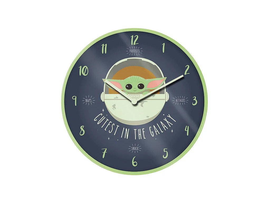Nástěnné hodiny Star Wars: Mandalorian - Cutest In The Galaxy pro fanoušky Mandaloriana a Star Wars pro fanoušky Baby Yody napájení: 1x baterie AA (není součástí balení) oficiálně licencovaný produkt Nechte si měřit čas tím nejroztomilejším dítětem v galaxii, Baby Yodou ze seriálu The Mandalorian! Pěkné nástěnné hodiny potěší fanoušky Star Wars, sci-fi ságy Hvězdné války. Detaily zboží Parametry Výška: 25,4 cm Šířka: 25,4 cm Délka: 2 cm Materiál: plast