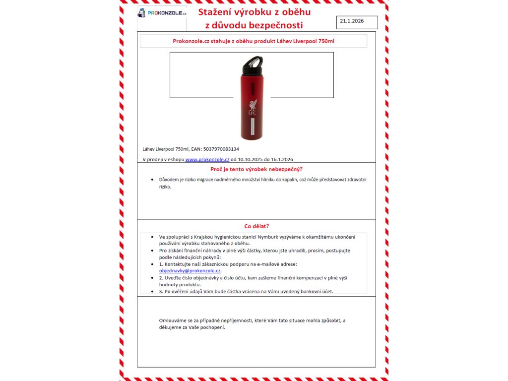 Láhev Liverpool 750ml Nové