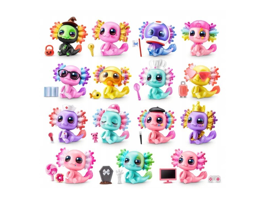 Děti si při rozbalování těchto překvapení užijí spoustu zábavy! Každý axolotl má jedinečný vzhled a skvělé doplňky. Najdete neuvěřitelně vzácného Astro-lotla?