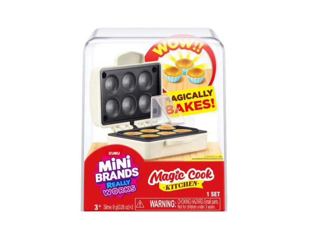 Žehlička na muffiny ZURU Mini Brands Cook Kitchen je funkční mini zařízení, které využívá UV světlo a je součástí řady Mini Brands. Obsahuje kuchyňské náčiní a skutečné ingredience pro realistickou zábavu při hraní. Vhodné pro děti od 3 let.